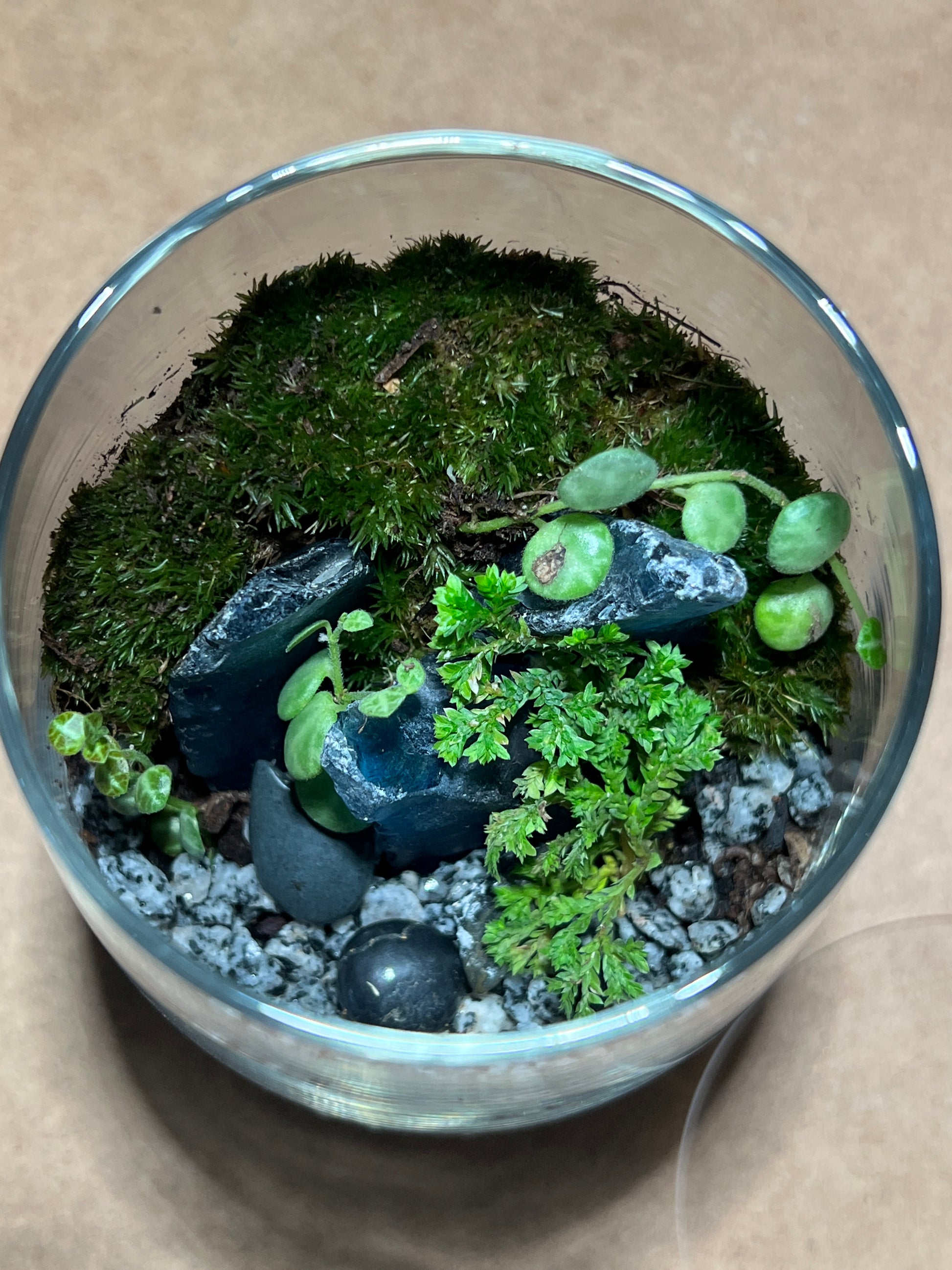 This little bundle of joy contains String of Turtles, Peacock Fern, Cushion Moss and Mai Fantum stones all above our substrate blend.