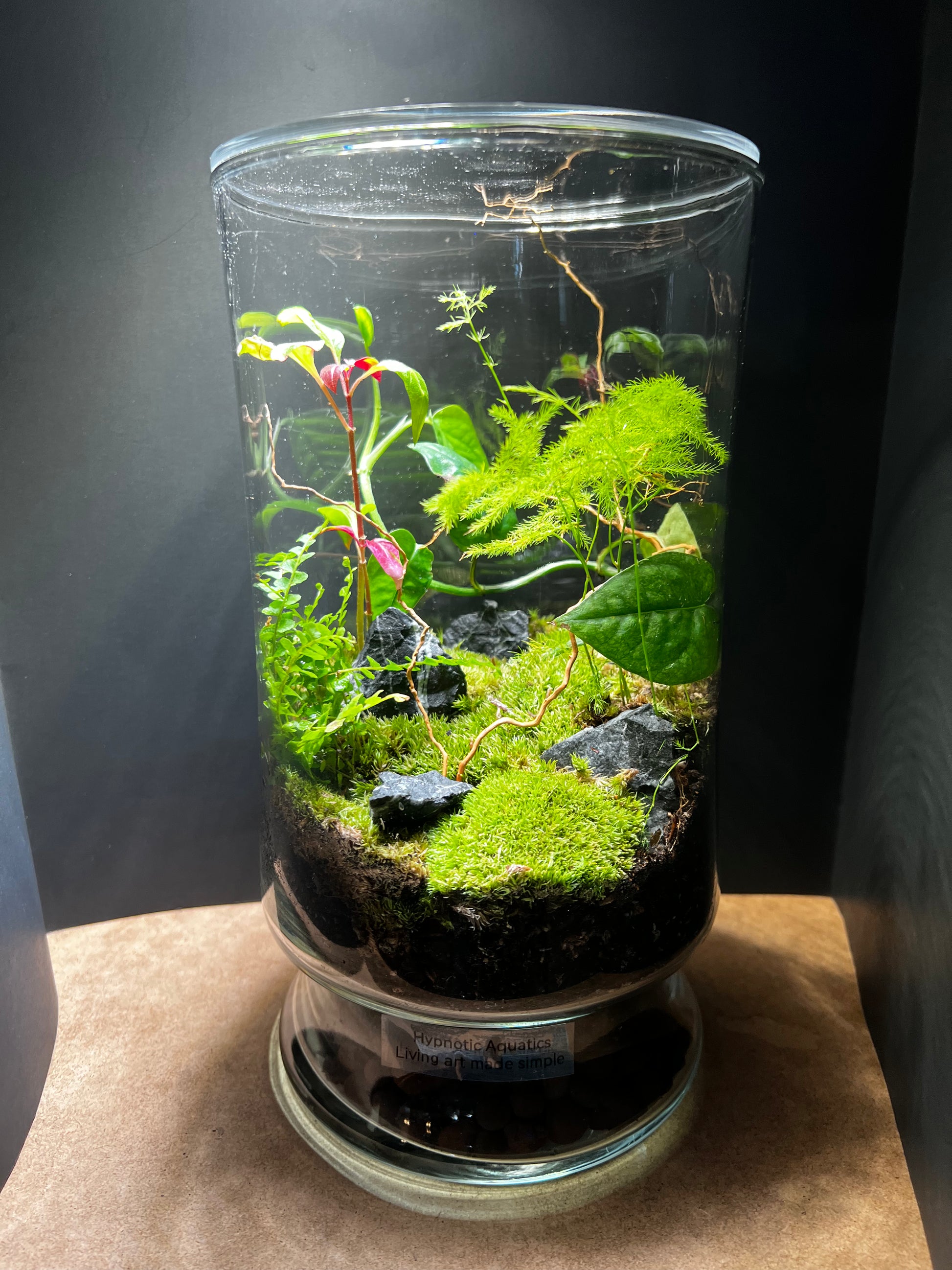 Starting with the eye catching Ludwigia repens, Variegated Begonia, Asparagus Fern, Lemon Butter Fern, Seiryu stones, Grape wood, and our tropical substrate blend to wrap up the list.
