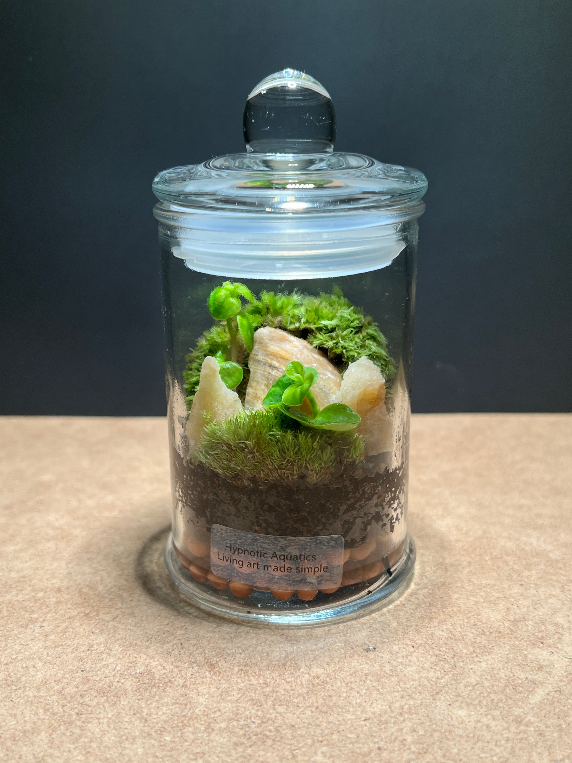 And another small secret is within this vessel. Peperomia Serpens, Rose Quartz, Cushion Moss, and our substrate blend below.