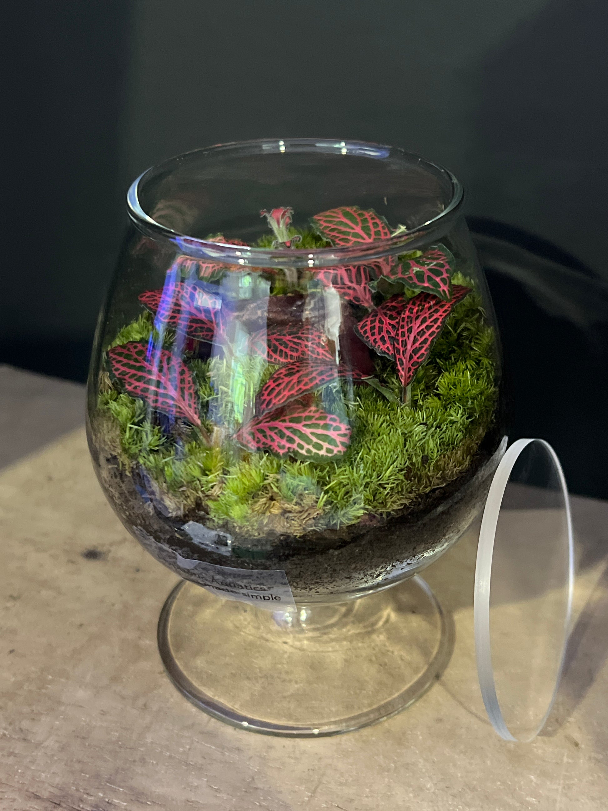 As requested by our client Larry, build another one just like his. Well Larry, here it is loaded with reds. Red Fittonia Hybrid, Red Sea glass, Cushion Moss and our substrate blend, nothing finer.